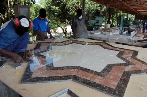 • Les blocs de marbre brut sont découpés, polis et façonnés selon les dimensions et les finitions souhaitées par le client.