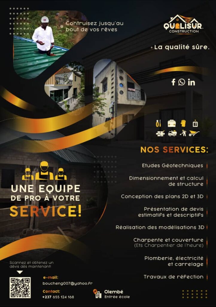 • Son engagement social: Qualisur s’engage à contribuer au développement durable du Cameroun en employant des travailleurs locaux et en utilisant des matériaux respectueux de l’environnement.